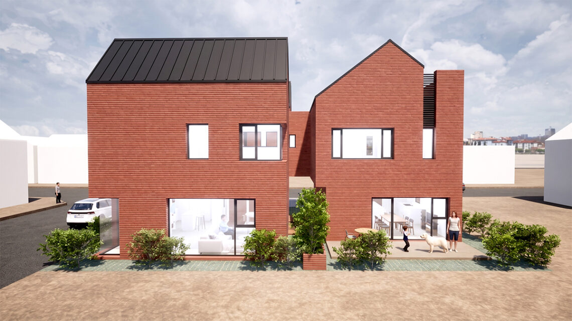 입면은 이러한 의도를 가장 직접적으로 드러낸다. 경사지붕이라는 공통 조건을 따르면서도, 익숙한 삼각지붕의 반복으로 보이지 않도록 두 볼륨의 성격을 다르게 구성했다. 하나는 안정적인 박공지붕의 인상을 유지하고, 다른 하나는 비대칭적인 단면을 통해 보다 입체적인 표정을 만든다.