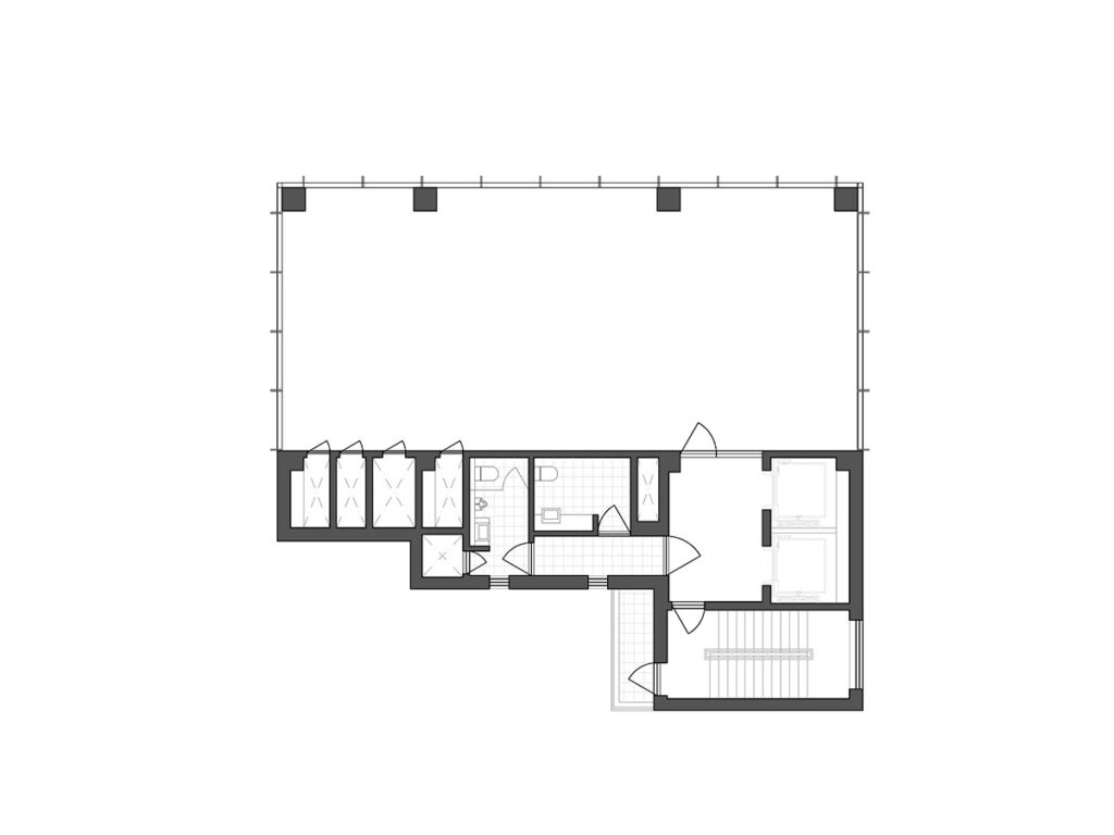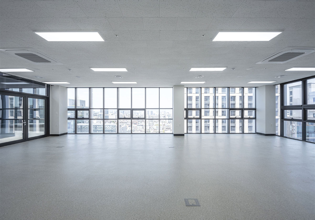 코어와 설비를 한쪽으로 집약하고, 화장실과 배관이 전용 공간을 침범하지 않도록 경계를 밀어냈다. 기준층은 간섭이 최소화된 사각형 평면으로 정리됐다. 특정 용도에 종속되지 않는 이 평면은 임대 시장의 변화에 유연하게 대응할 수 있는 기반이 된다. 지금 어떤 업종이 들어오든, 나중에 프로그램이 바뀌어도 손실이 적다.